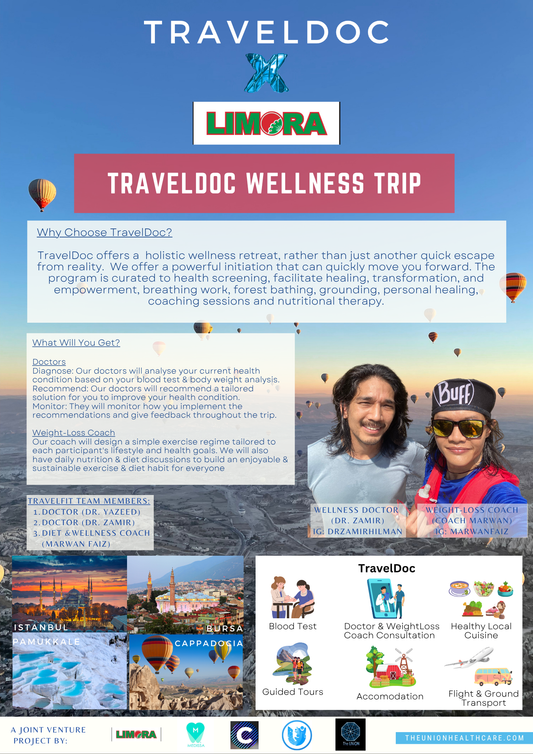 TravelDoc is a modern travel and wellness brand founded by 2 Doctors (Dr Zamir Hilman & Dr YZ) & a Diet Coach, Marwan Faiz, a certified wellness & weight-loss coach, and Certified travel Advisor.